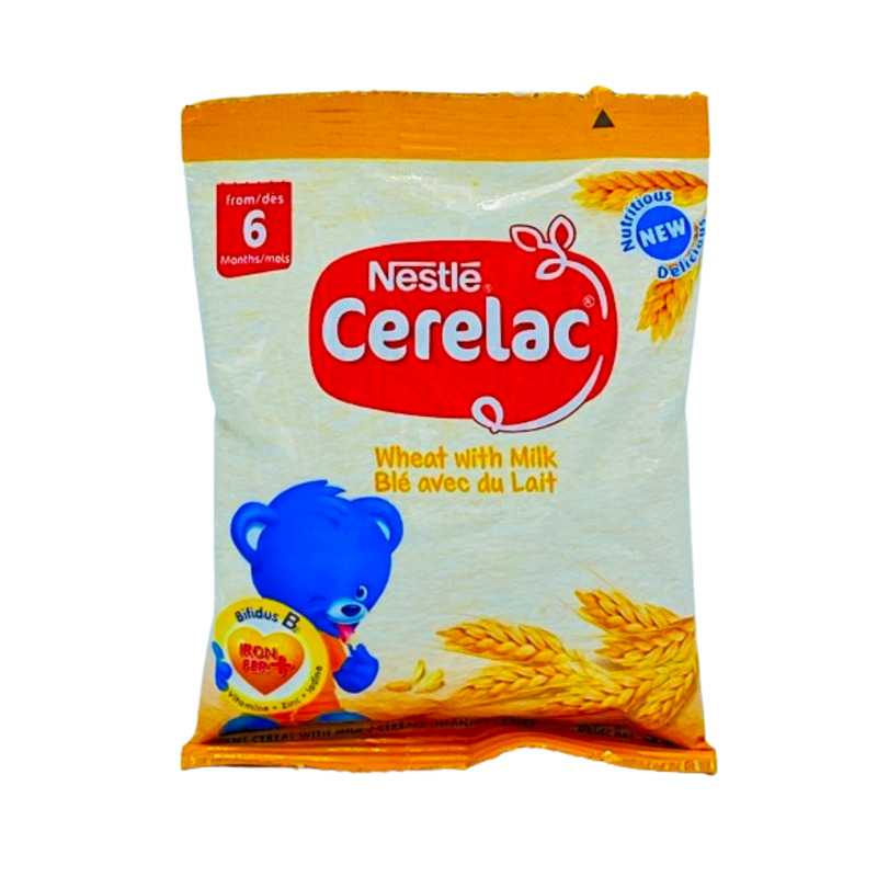 CERELAC Céréale au Blé Nestlé en sachet de 50G est une préparation de céréales pour bébés, idéale pour l'introduction des solides dans l'alimentation des tout-petits dès 6 mois. Cette céréale est enrichie en vitamines et minéraux essentiels, notamment le fer, le calcium, et les vitamines A et C, pour soutenir la croissance et le développement.
