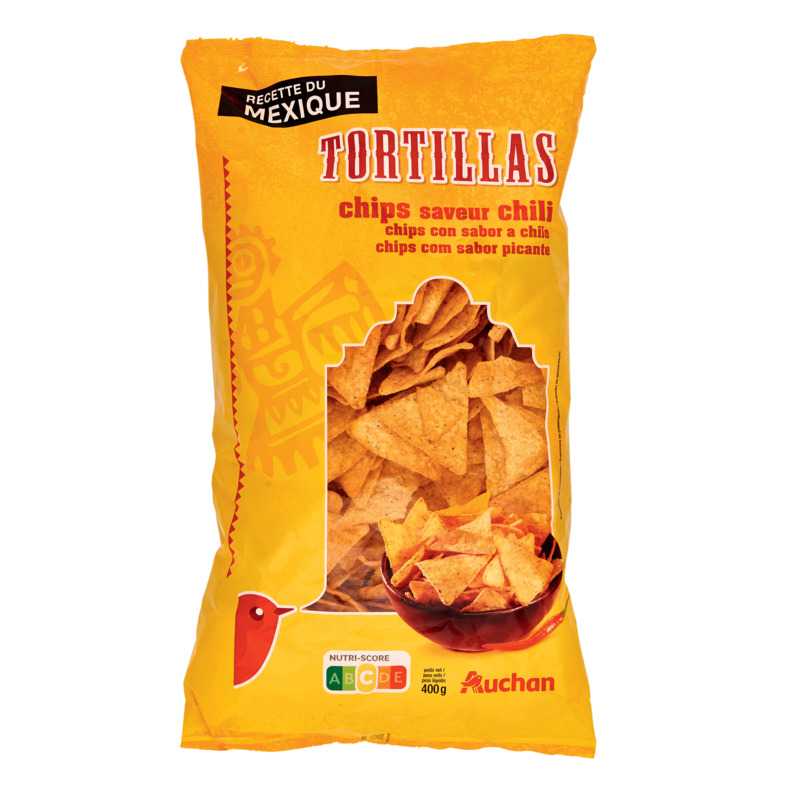 AUCHAN Chips tortillas saveur chili à l'huile de tournesol 400g
