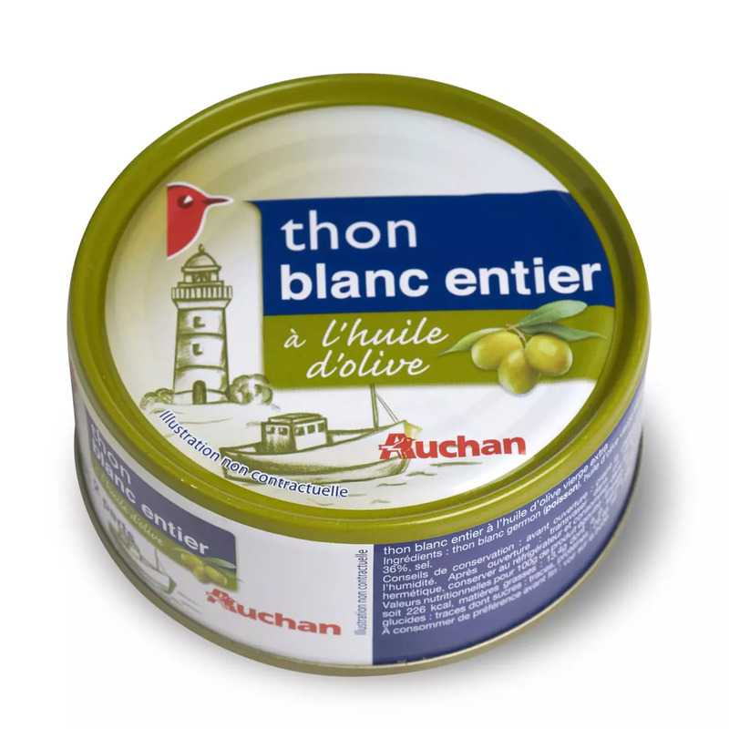 Ingrédients : Thon blanc germon (POISSON) 65%, huile d'olive vierge extra 34%, sel.