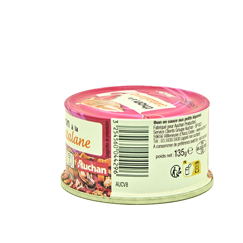 Ingrédients : Thon (POISSON) 29%, eau, cornichons saumurés 15% (cornichons, eau, vinaigre d'alcool, sel, affermissant : chlorure de calcium), purée de tomate double concentrée 15%, carottes 6.6%, huile de colza, oignons 3.7%, sucre, vinaigre de vin, sel épaississants : gomme guar, gomme xanthane arôme naturel, poivre. Traces éventuelles de blé, d'oeufs, de lait et de moutarde.