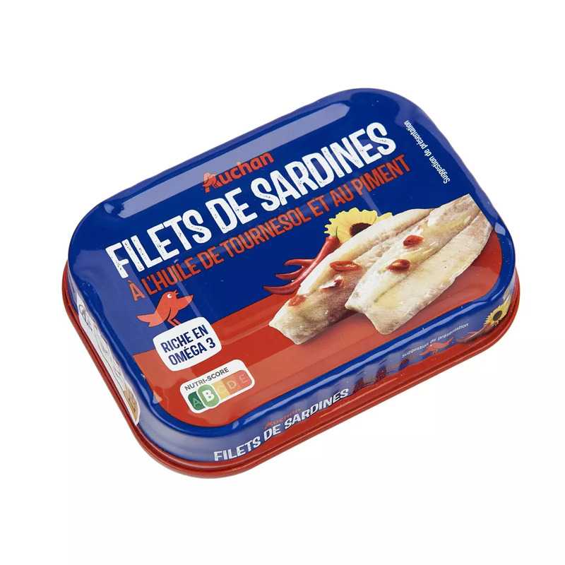 AUCHAN Filets de sardines à l'huile de tournesol et au piment 100g