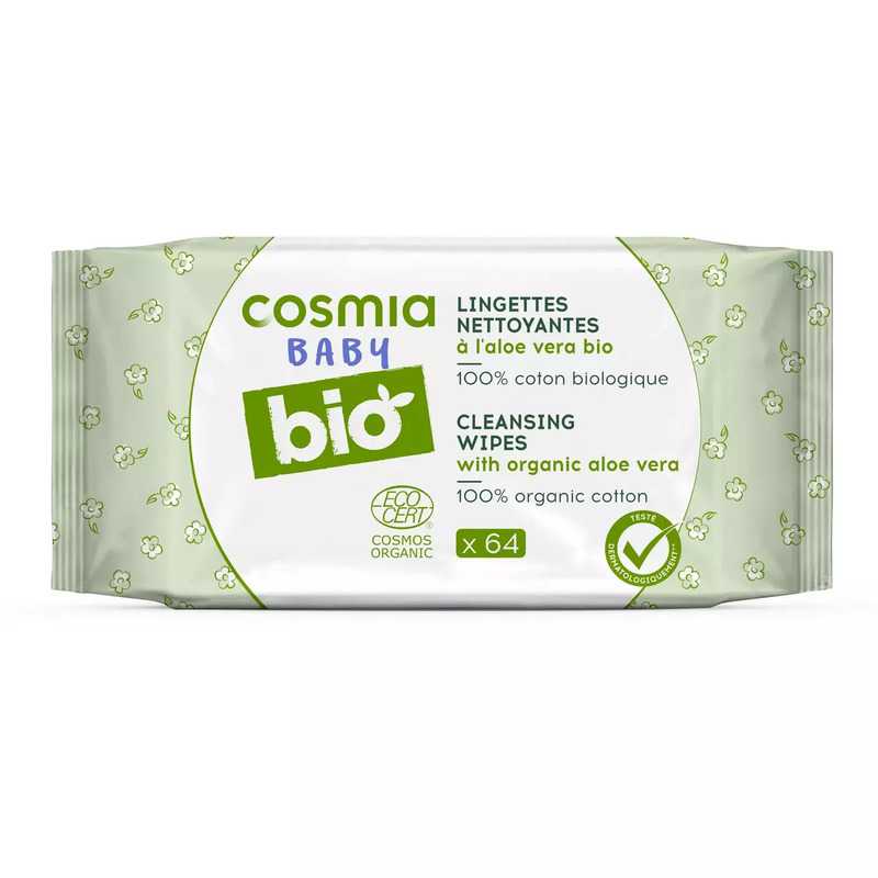 COSMIA BABY BIO Lingettes nettoyantes pour bébé à l'aloé vera bio 64 lingettes