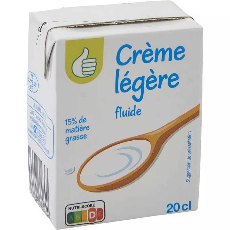 POUCE Crème fluide légère 15% à base de lait collecté en France, conditionnée en France, fluide, légère avec 15% de matières grasses, en briquette sans bouchon 20cl