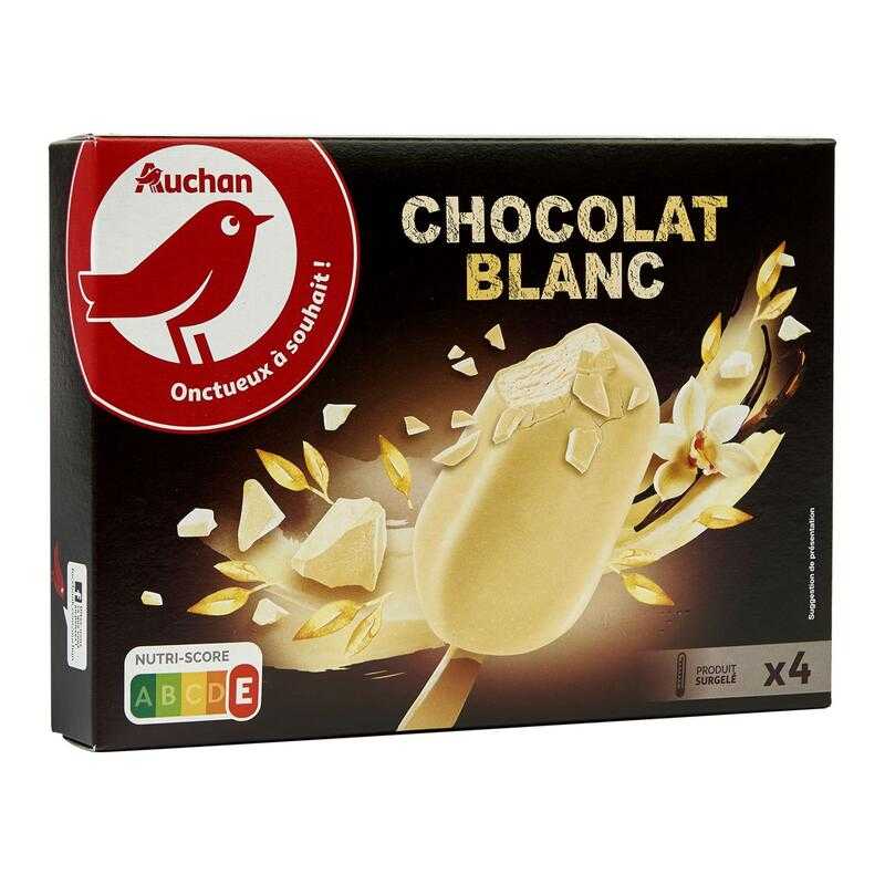 AUCHAN Bâtonnet glacé chocolat blanc 4 pièces 300g
