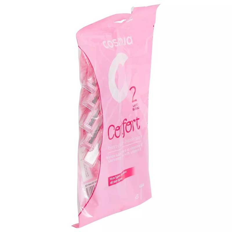 Offrez vous un rasage précis et confortable avec le rasoir jetable Cosmia. Conçu spécialement pour répondre aux besoins spécifiques du rasage féminin, ce rasoir bi-lames comporte une bande lubrifiante au thé vert qui facilite la glisse de la lame sur la peau.