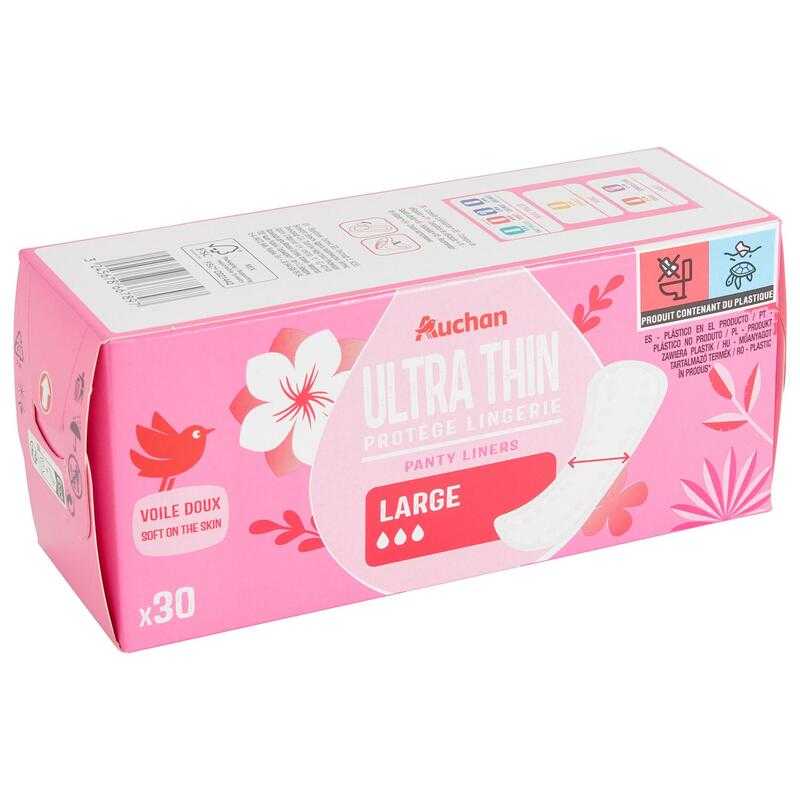ingrédients Fibres de cellulose, superabsorbant (polyacrylate de sodium), polyéthylène, polypropylène, colle