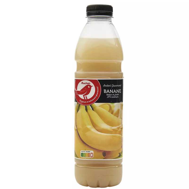 Ingrédients : eau, purée de banane, jus de banane à base de concentré, sucre, jus de citron concentré, antioxydant : acide ascorbique.