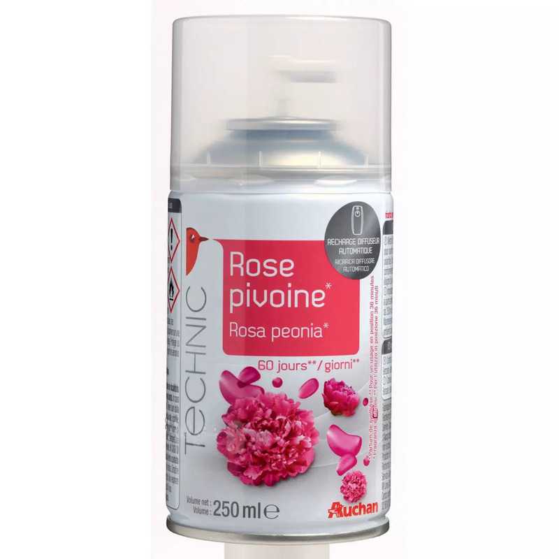 AUCHAN RECHARGE ROSE PIVOINE POUR DIFFUSEUR AUTOMATIQUE 250ML Recharge pour diffuseur automatique Rose pivoine