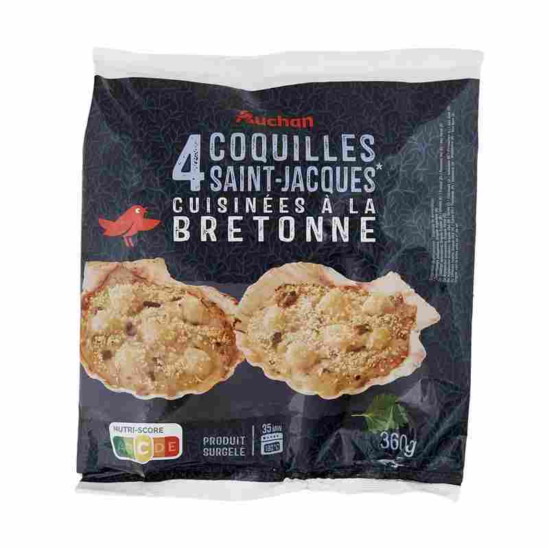 AUCHAN Coquilles Saint-Jacques cuisinées à la bretonne 4 pièces 360g