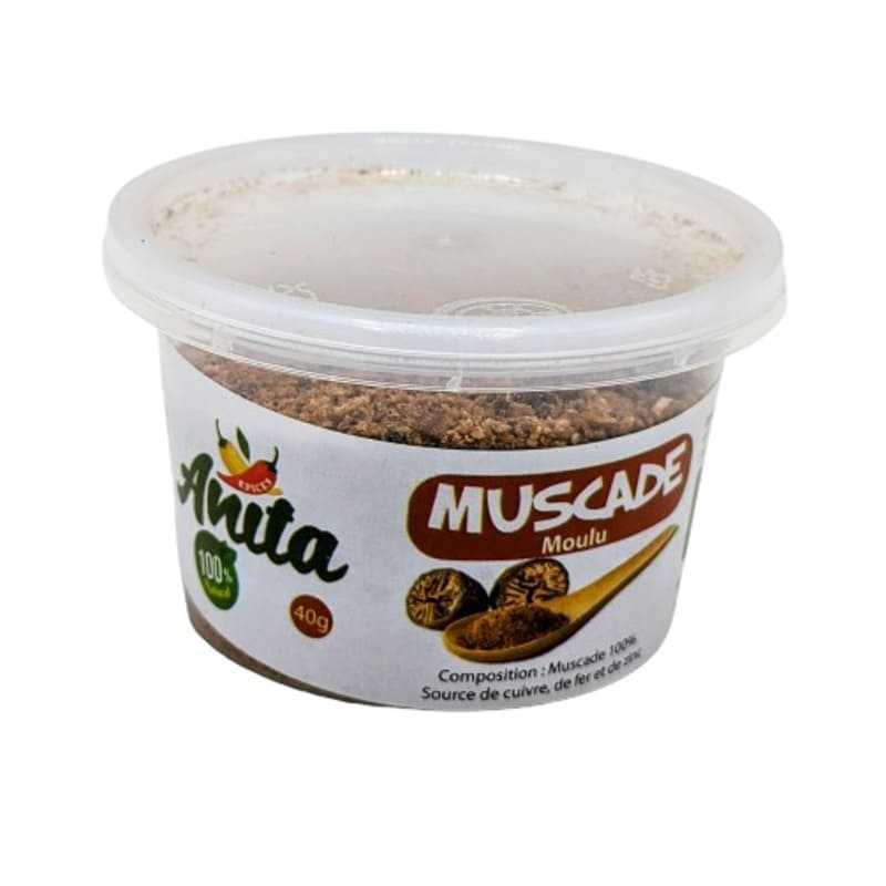 La muscade Anita, conditionnée en pot de 45 grammes, est une épice aromatique et chaude obtenue à partir du noyau séché du fruit de muscadier. La muscade moulue est idéale pour ajouter une saveur douce et épicée à une variété de plats.