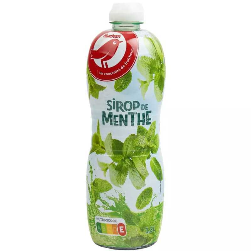 Ingrédients : Eau, sucre, sirop de glucose-fructose, arôme naturel de menthe, colorants : caramel ordinaire, lutéine, bleu brillant FCF, antioxydant : acide ascorbique.
