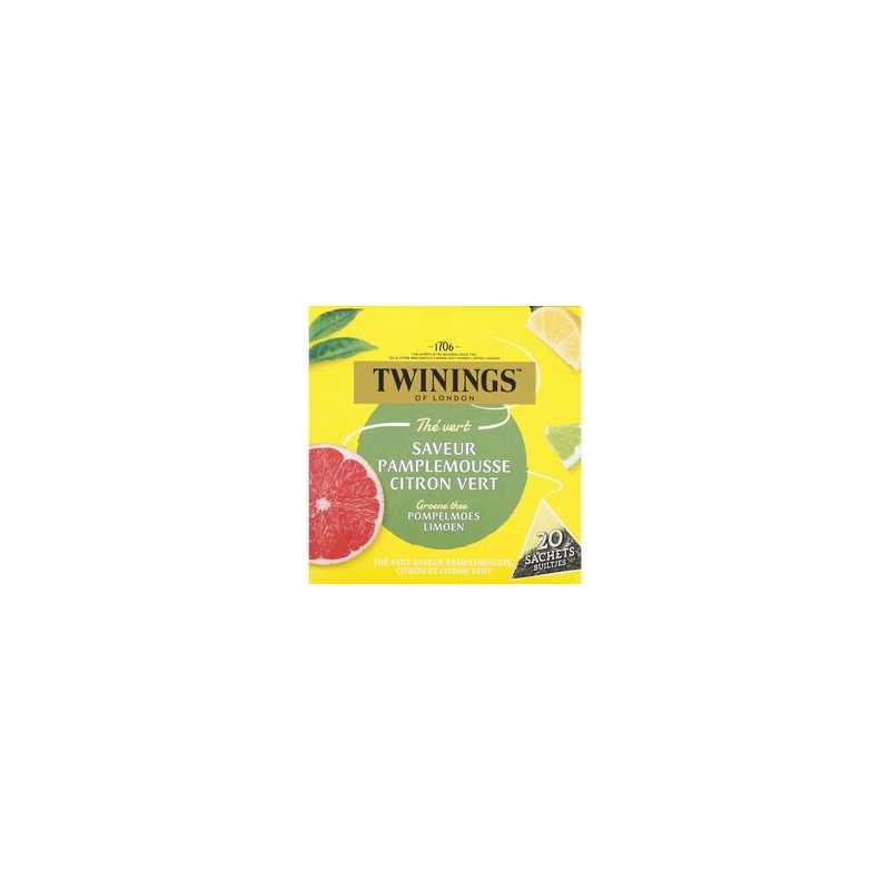TWININGS Thé vert pamplemousse citron et citron vert 20 sachets 32g