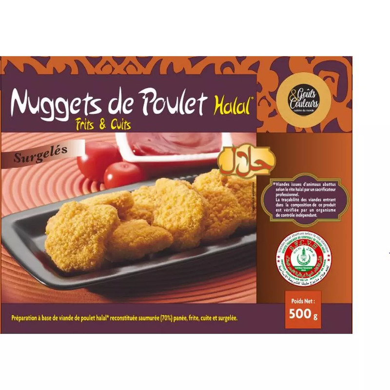 Nuggets poulet halal frits et cuits surgelés 500g