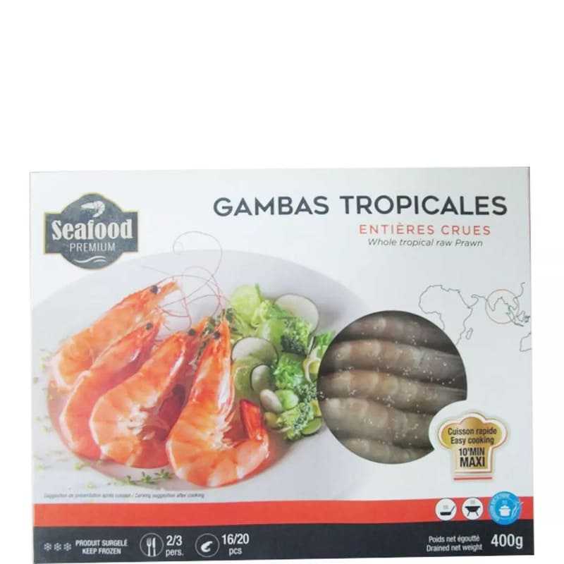 SEAFOOD PREMIUM Gambas tropicales entières crues 16-20 pièces 400g