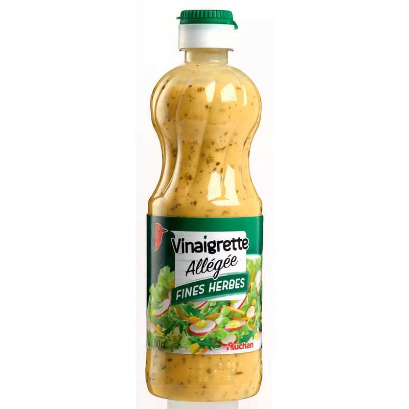 Ingrédients : Eau, huile de colza 25,5%, vinaigre de vin blanc (contient SULFITES), vinaigre d'alcool, MOUTARDE de Dijon (eau, graines de MOUTARDE, vinaigre, sel, acidifiant : acide citrique), fines herbes réhydratées 2,5%, sel, amidon transformé de pomme de terre, sucre, jus de citron concentré, épaississant : gomme xanthane, colorant : caroténoïdes, arôme naturel d'ail, arômes (contient CÉLÉRI), poivre.